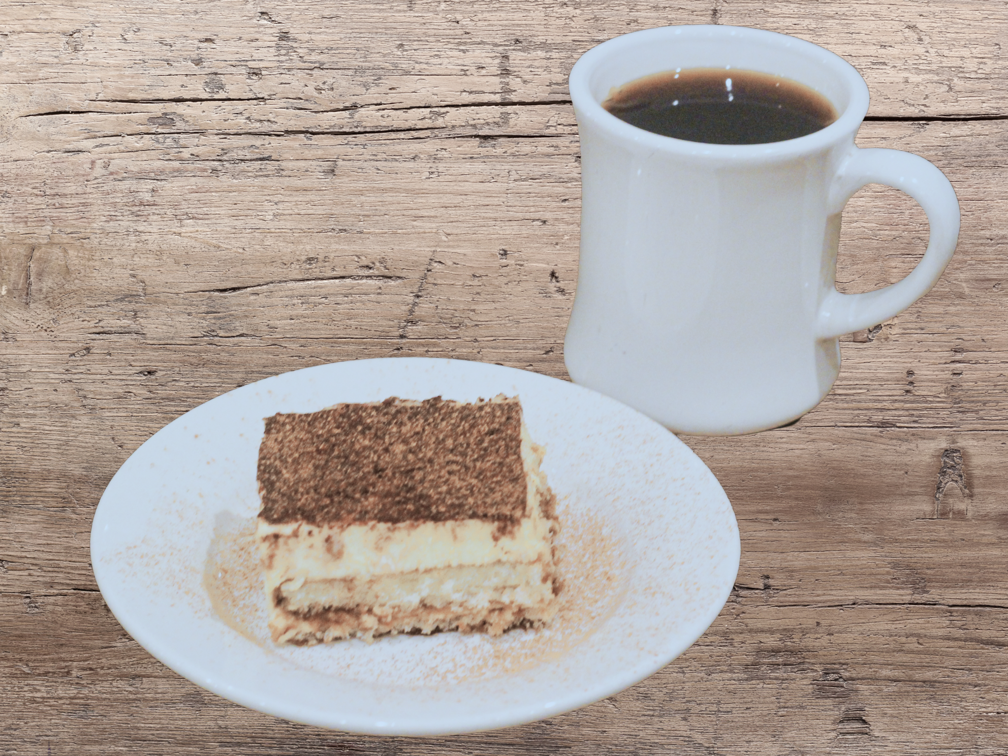 Tiramisu means “pick me up”. An Italian original sponge cake soaked in brandy and espresso, layered with fresh mascarpone cheese, whipped cream and decorated with shaved chocolate.